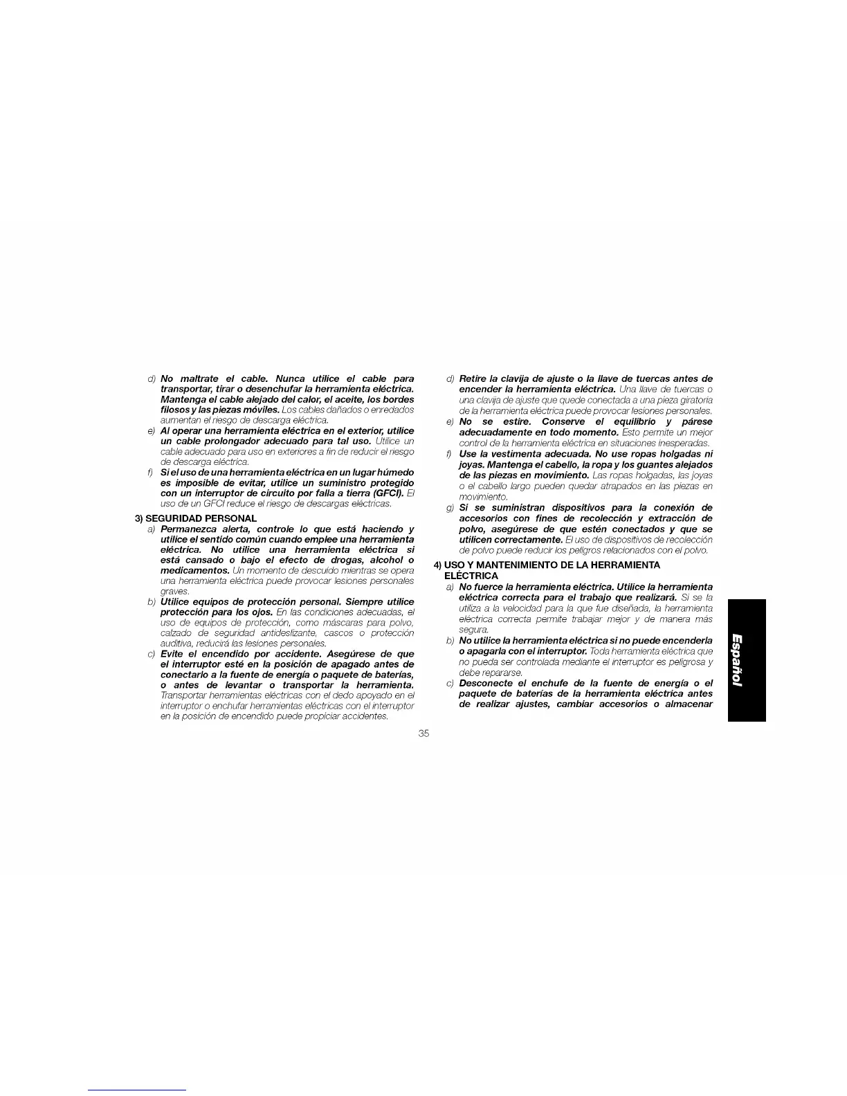 e) AI operar una herramienta el_ctrica en el exterior, utilice
