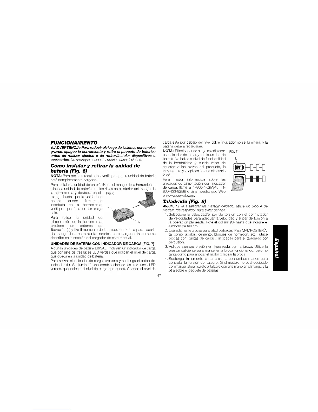 de carga, Ilame al 1-800-4-DEWALT (1-