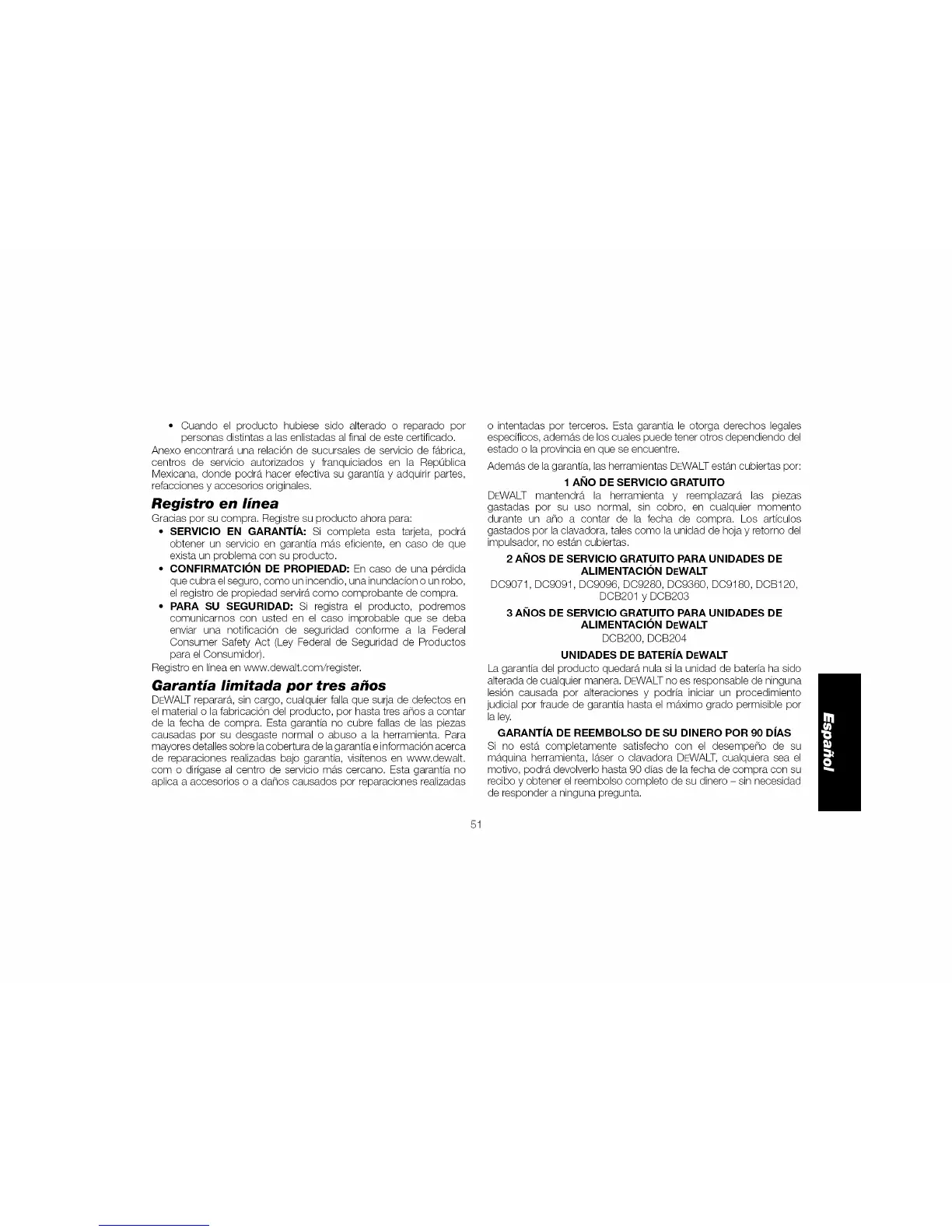 Registro en linea en www.dewalt.com/register.