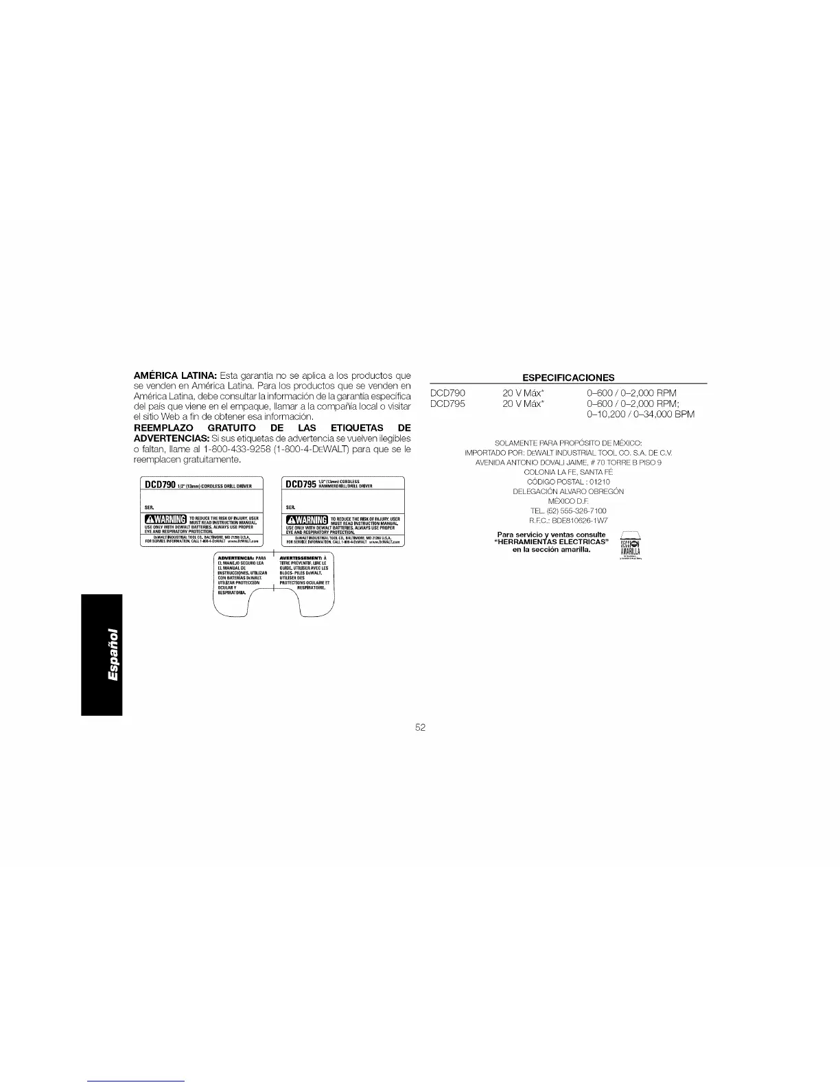 IMPORTADO POR: DEWALff INDUSTRIAL TOOL CO. S.A. DE C.V.