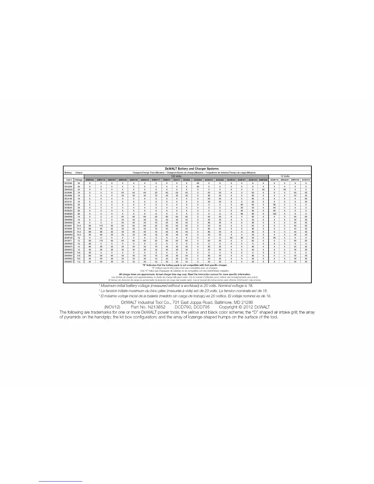 (NOV12) Part No. N213852 DCD790, DCD795 Copyright © 2012 DEWALT