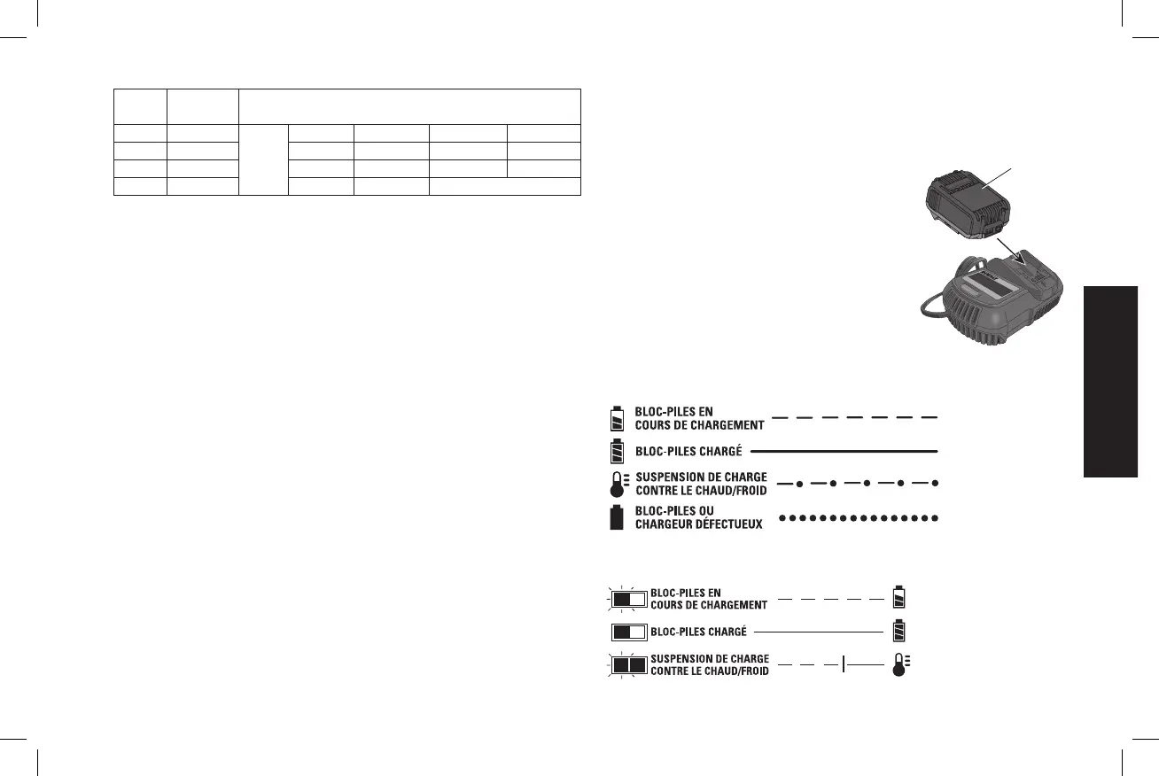 directives de sécurité avant d’utiliser le chargeur. Consulter le tableau