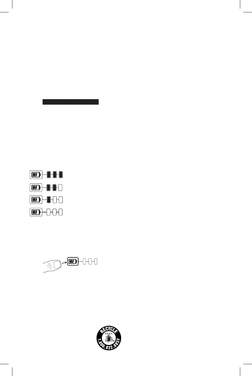 illuminate designating the level of charge left. When the