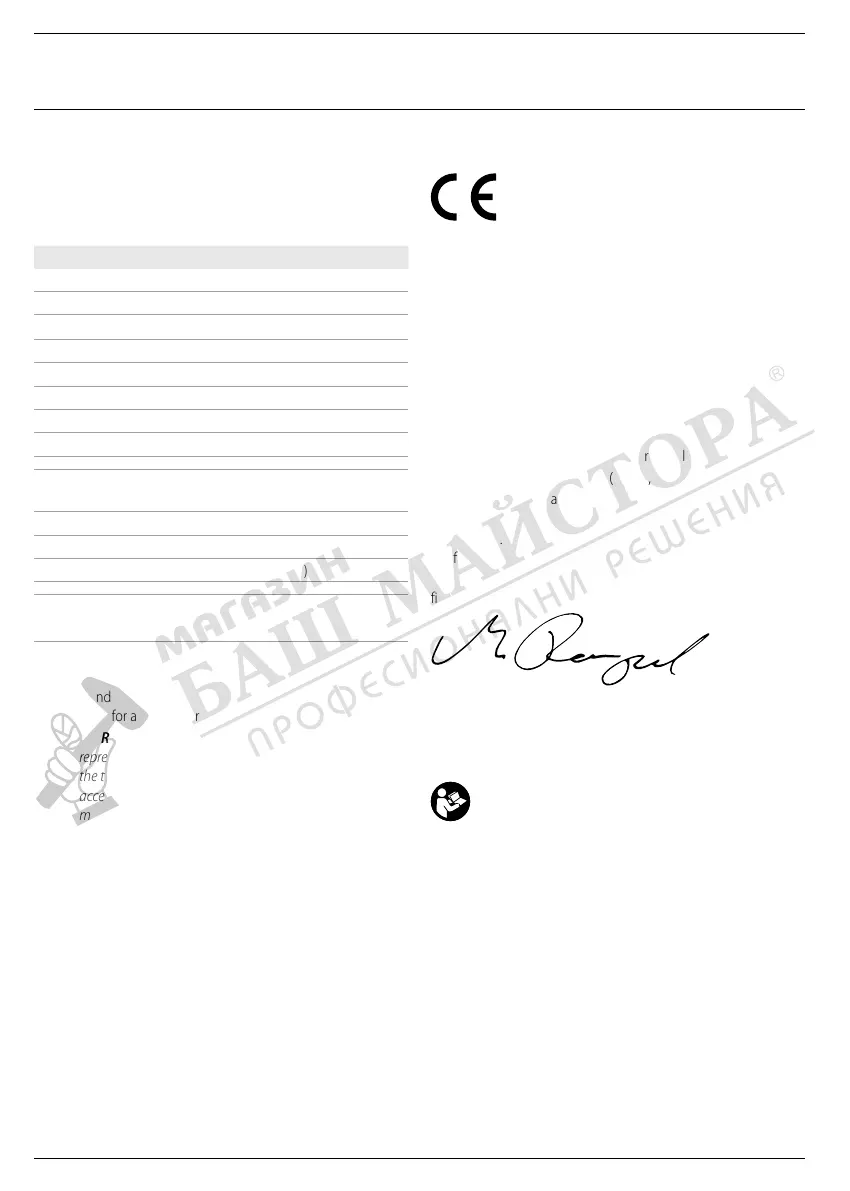 Noise values and vibration values (triax vector sum) according to EN60745-2-