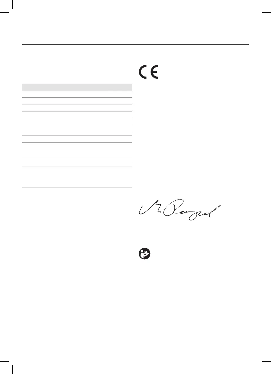 Noise values and vibration values (triax vector sum) according to EN60335: