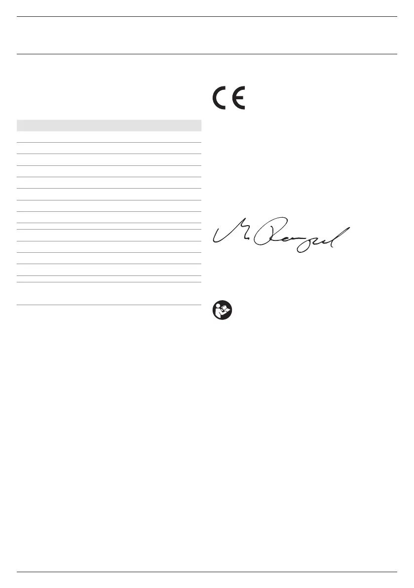 Noise values and vibration values (triax vector sum) according to EN60745-2- :
