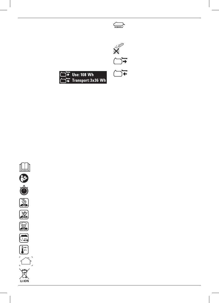 Wh-märkning indikerar 3 x 36 Wh (tre batterier på