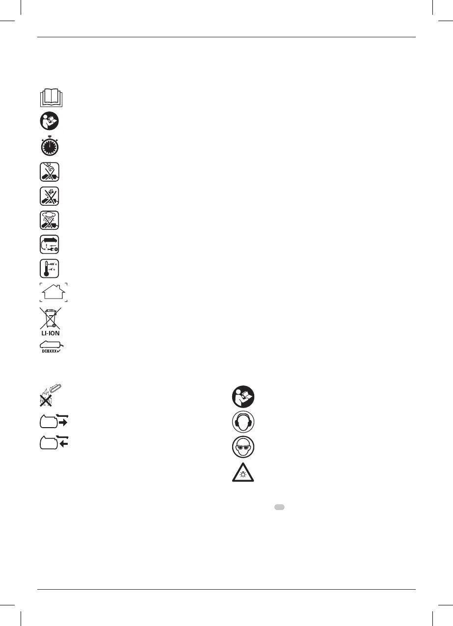 The following pictograms are shown on the tool: