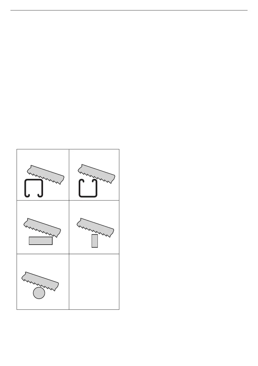• Houd altijd ten minste 2–3 tanden in dezaagsnede.