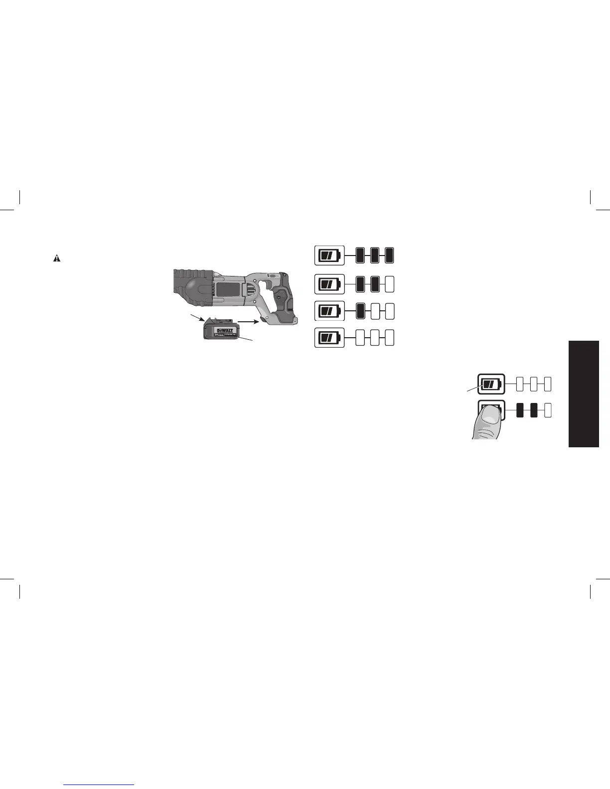 (G) et tirez fermement le bloc-piles hors de la poignée de l’outil.