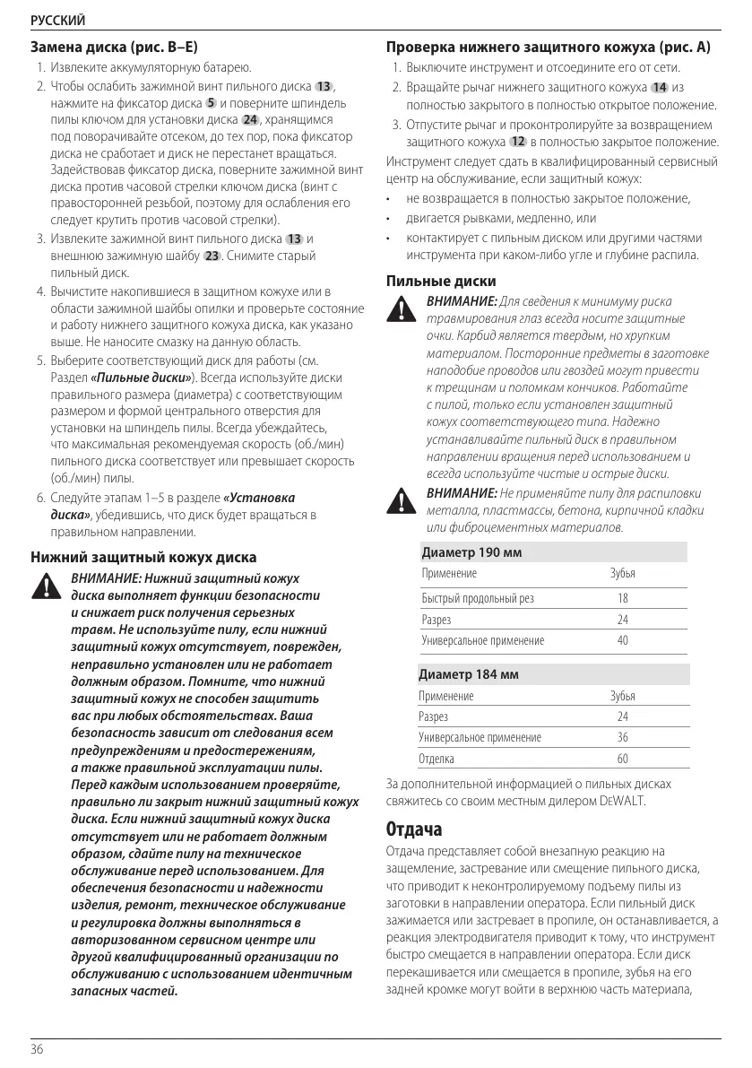 Раздел «Пильные диски»). Всегда используйте диски