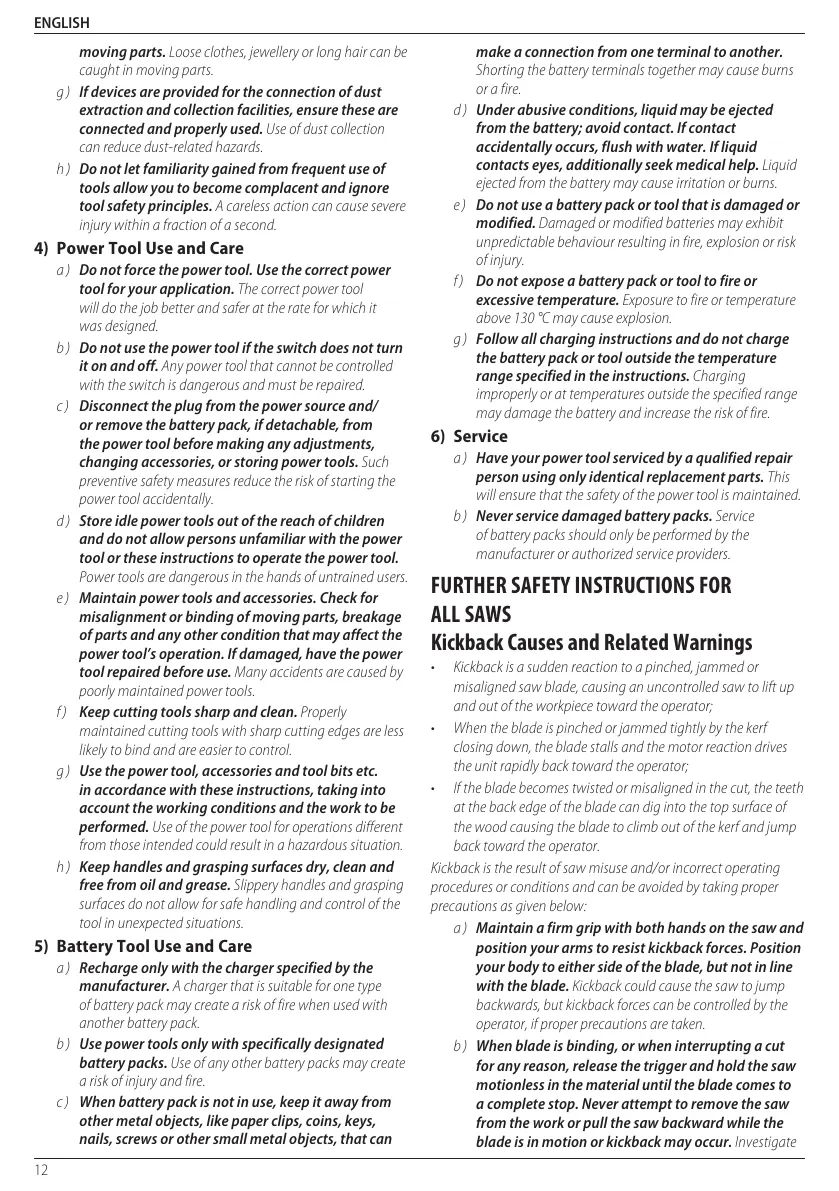 misaligned saw blade, causing an uncontrolled saw to lift up