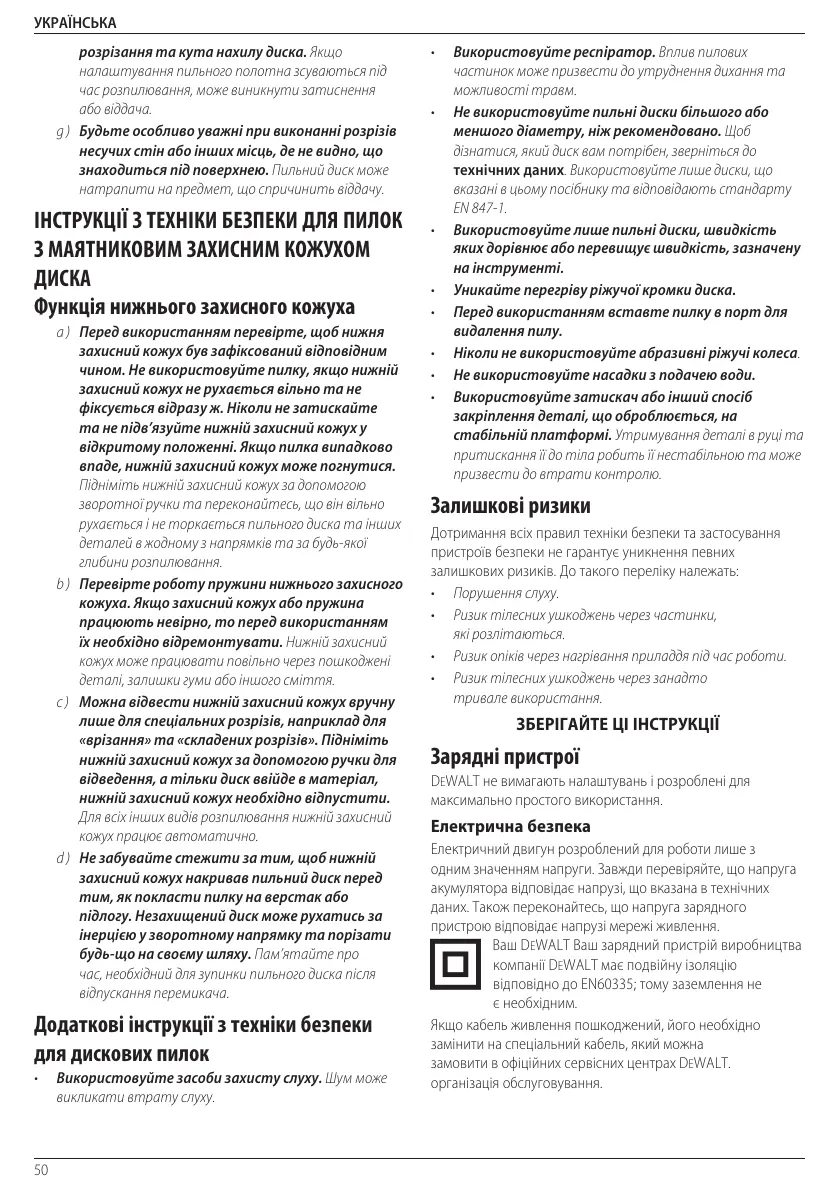 • Ніколи не використовуйте абразивні ріжучіколеса.