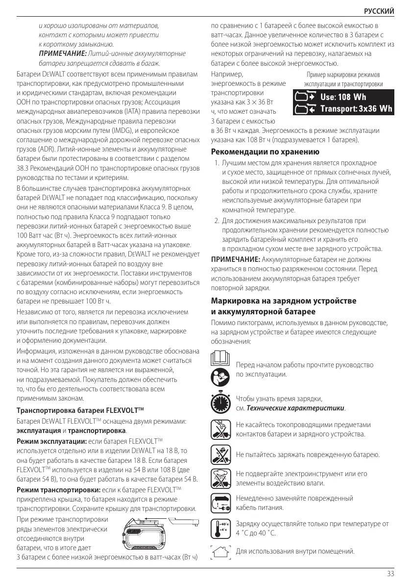 Транспортировка батареи FLEXVOLT