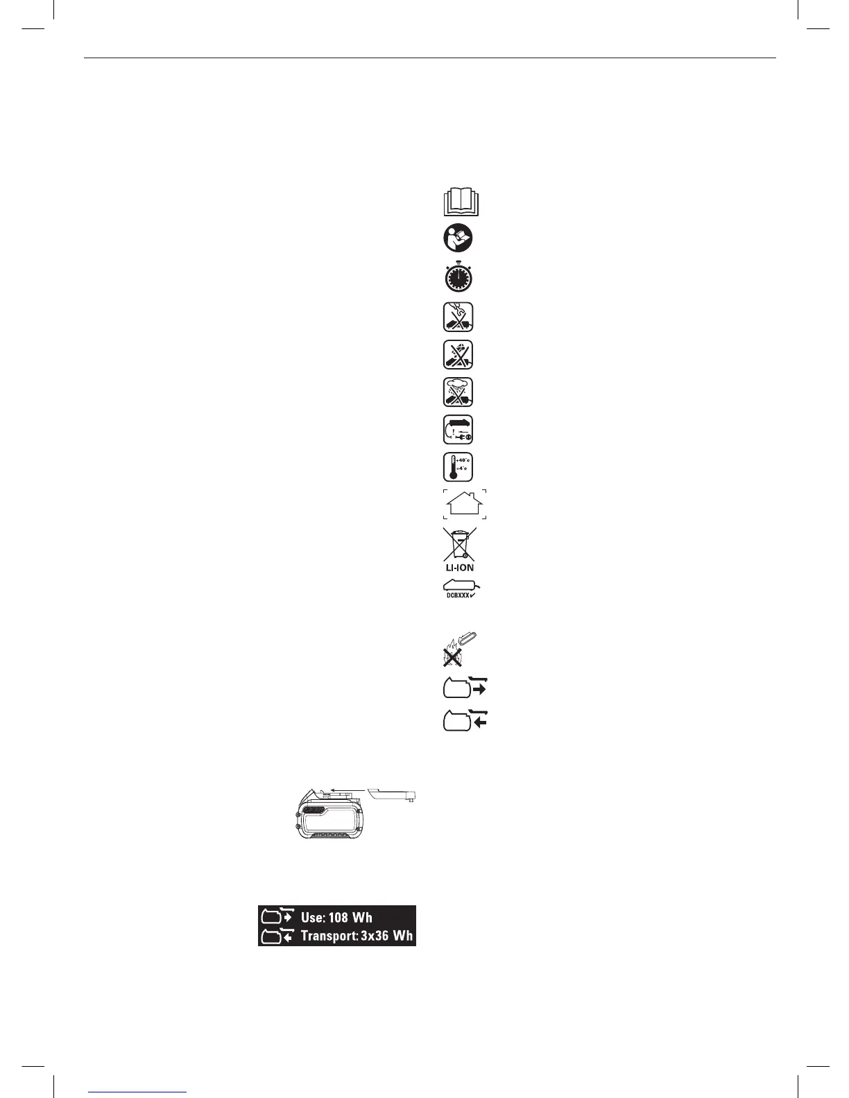 and the battery pack may show the following pictographs: