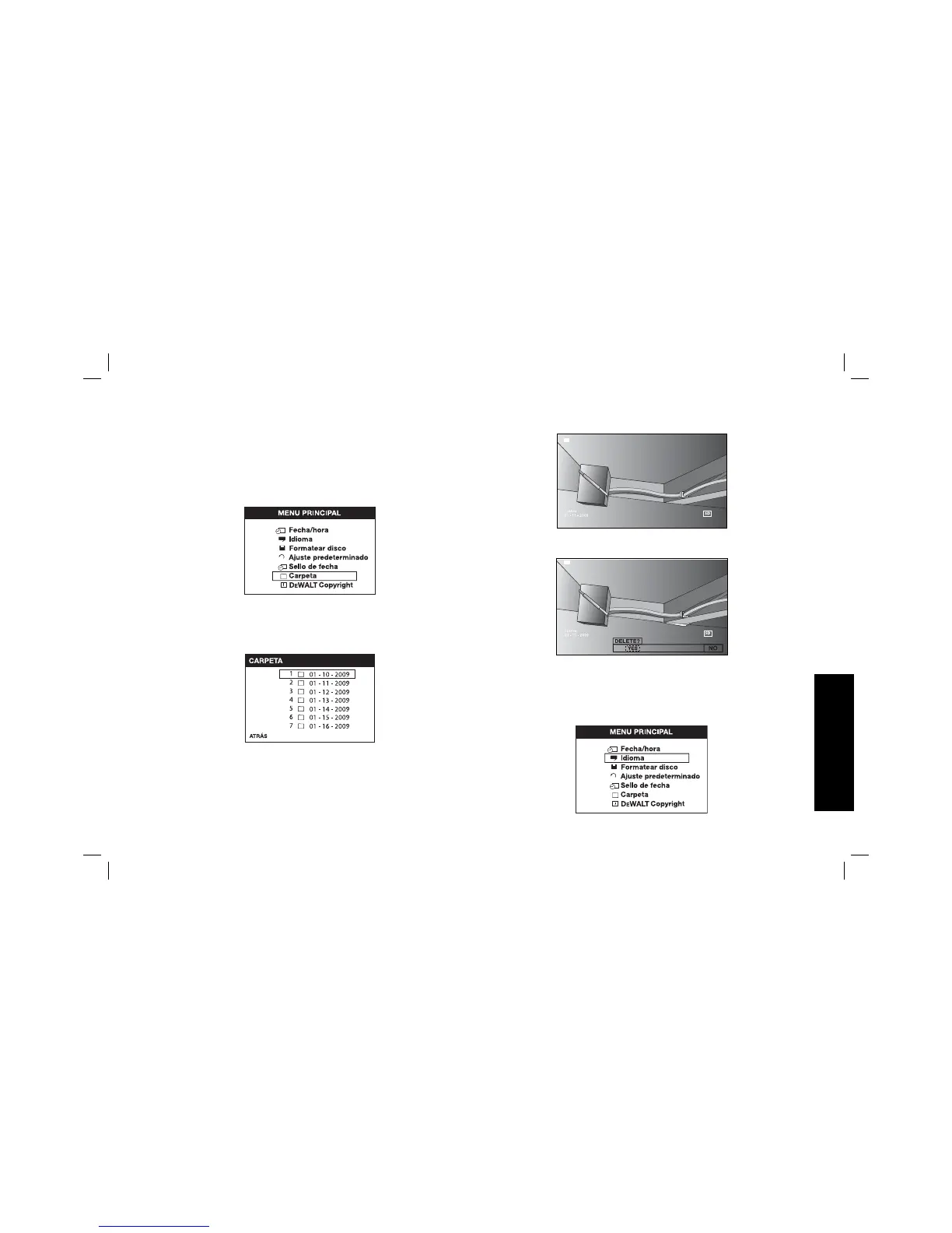 8. Oprima el botón de borrar. Seleccione SÍ para borrar la foto o