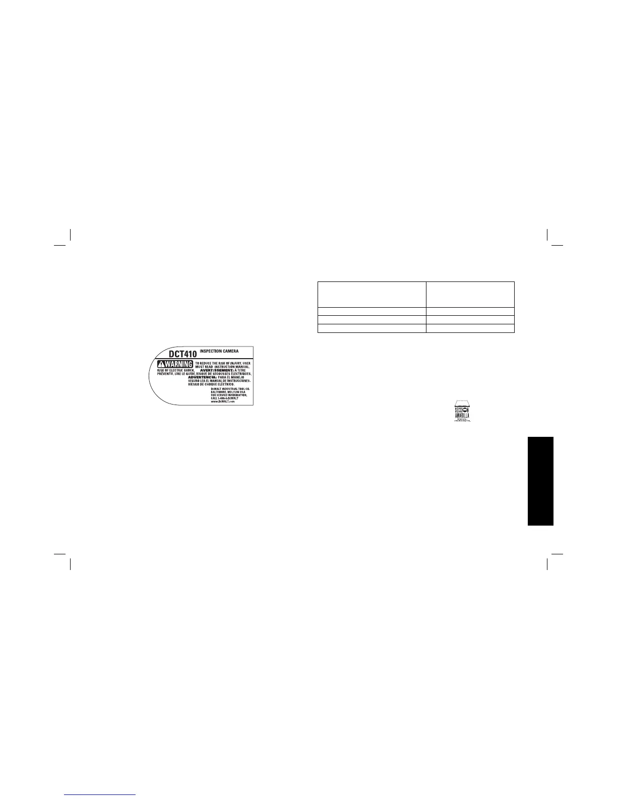 Diámetro del cable de la cámara DCT410: 17 mm