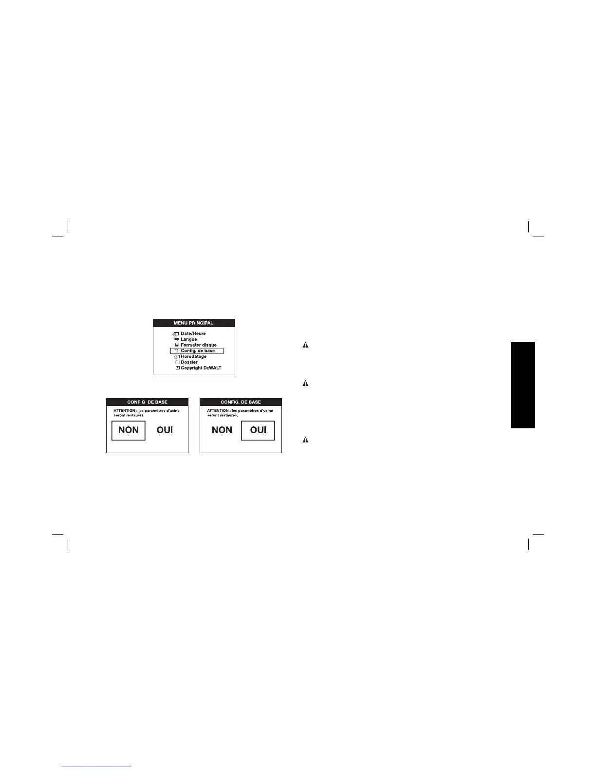4. Appuyez sur les flèches avant ou retour pour choisir NON ou OUI.