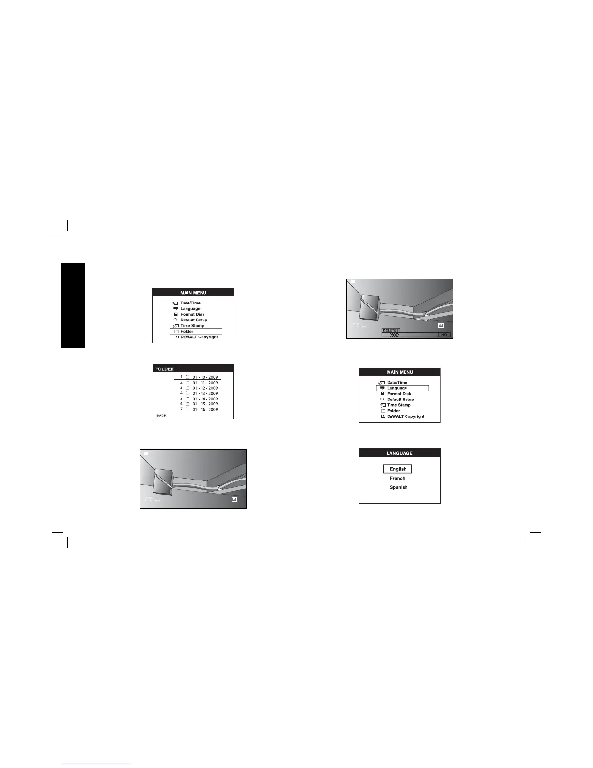 DeWalt DCT412 - Media Management: Deleting and Language Change; Deleting Files While Viewing