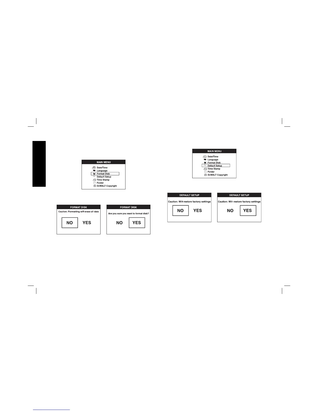 DeWalt DCT412 - Card Formatting, Default Setup, and Operating Tips; SD Card Formatting and Default Setup