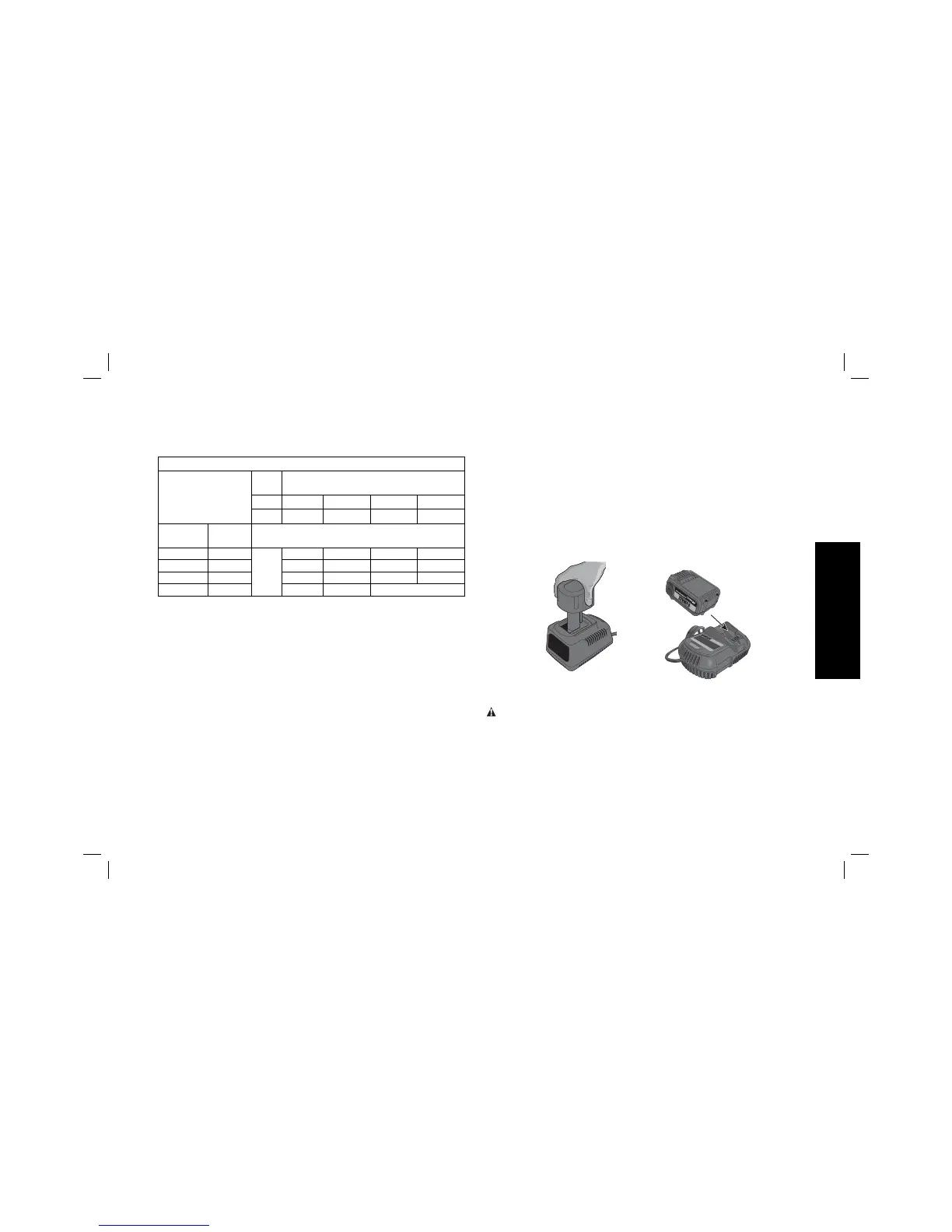utilisation du chargeur. Consulter le tableau en fin de manuel pour