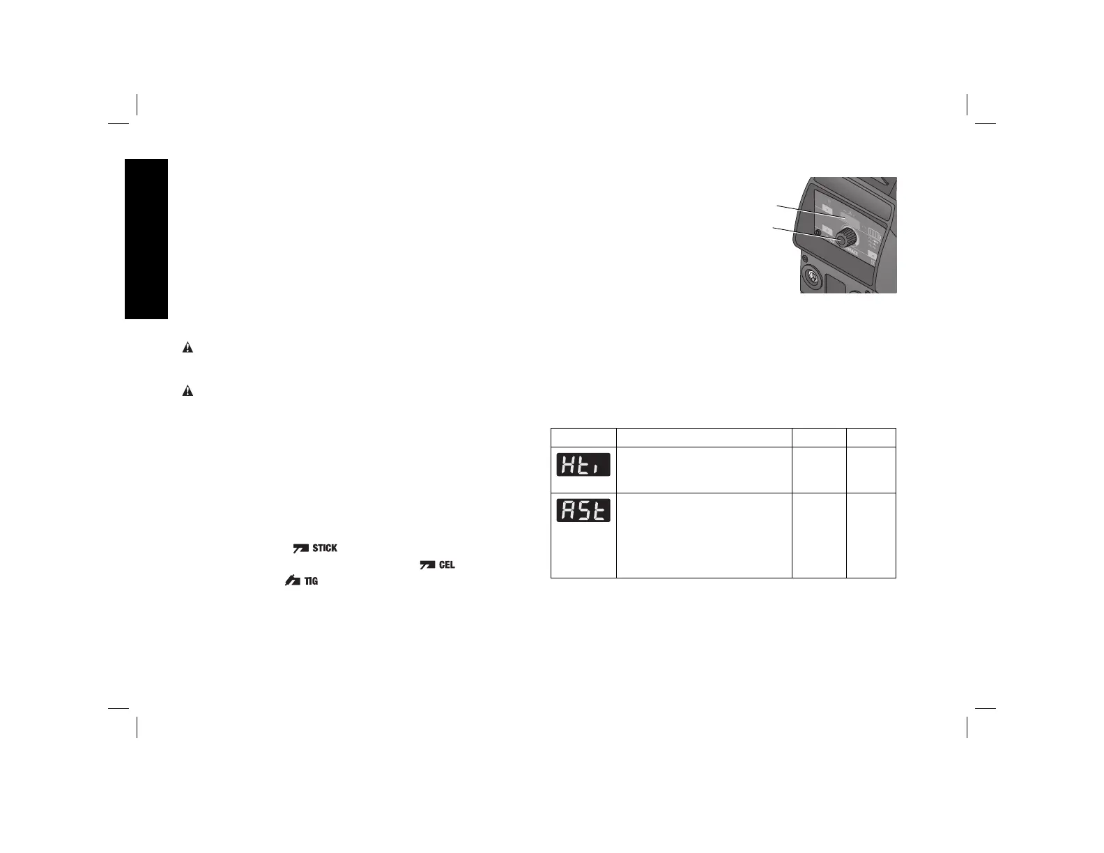 1. Use the welding process button (L) to select the process