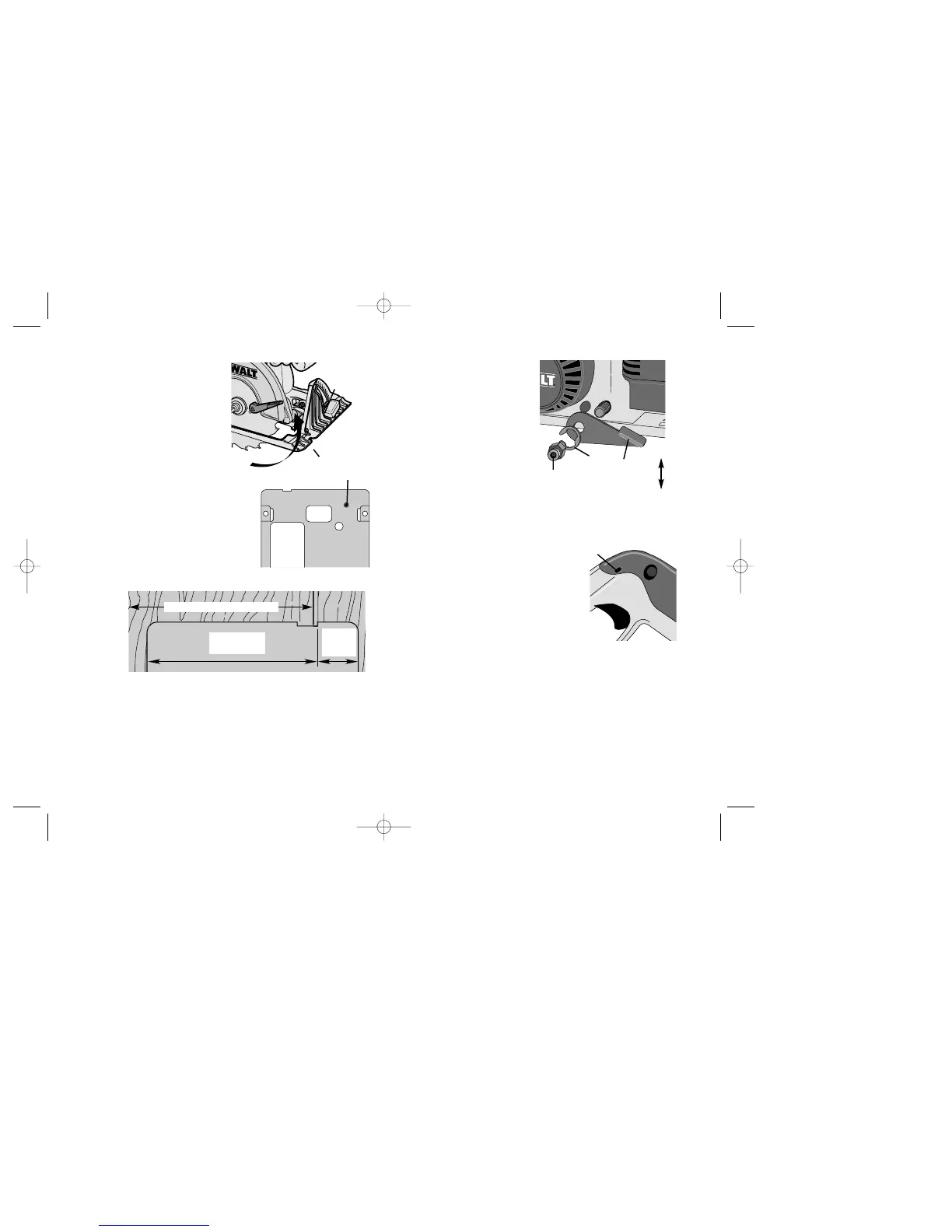 indicator lines up with the left (inner) side of the saw blade. Guide along the pencilled