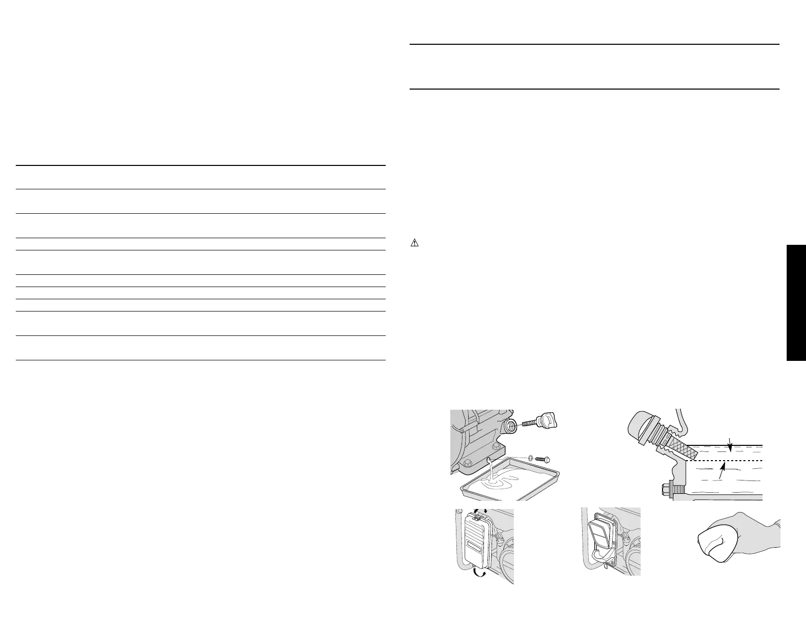 3. Remplir le carter du moteur avec l'huile recommandée (voir page 3). Vérifier le niveau d'huile