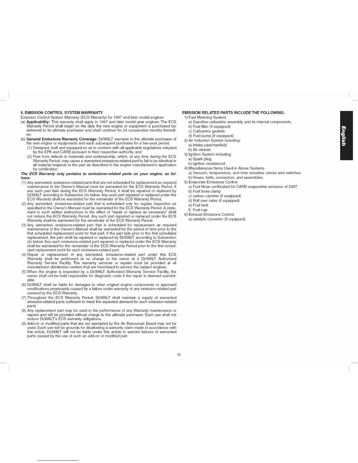 (b) General Emissions Warranty Coverage: DEWALT warrants to the ultimate purchaser of