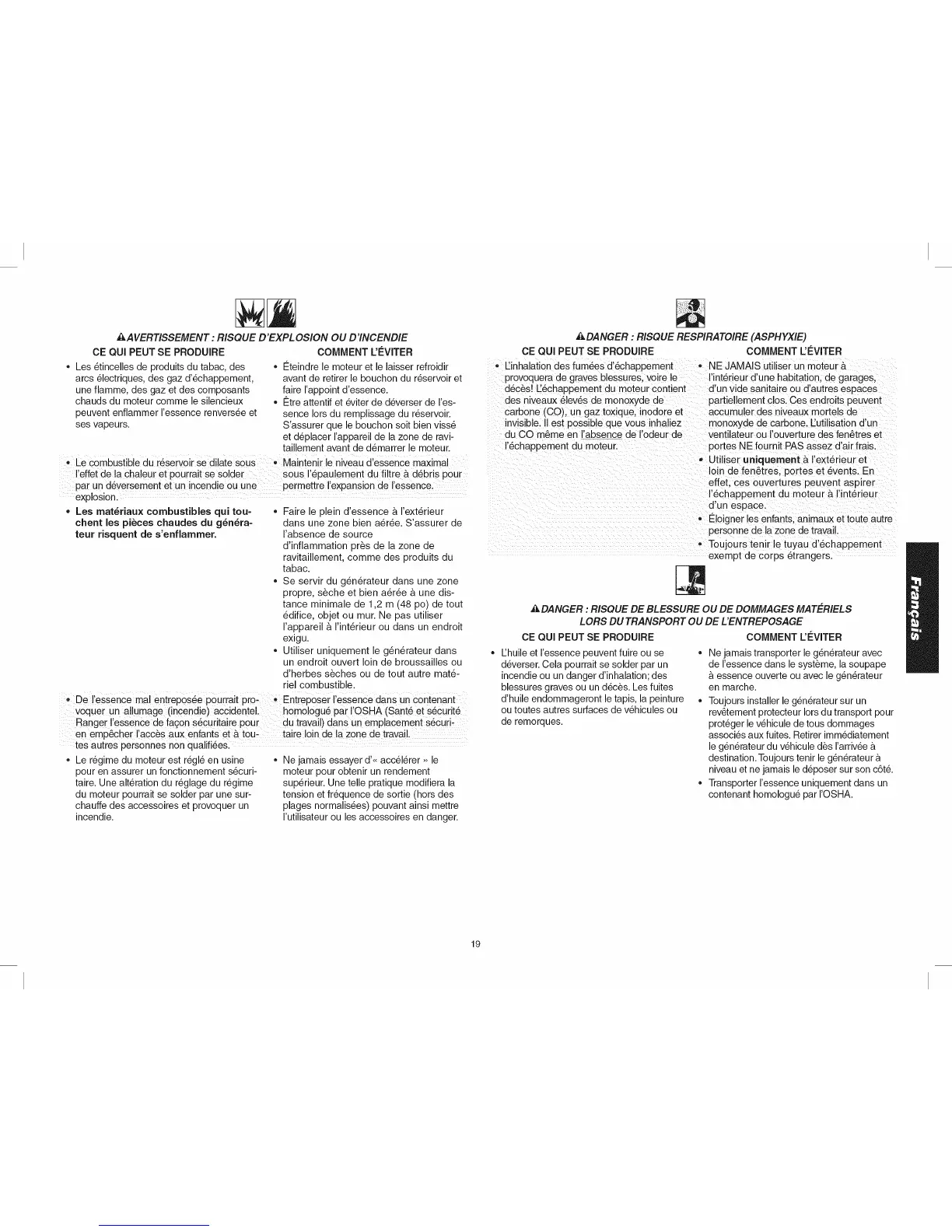 ,, I'inhalation des fum6es d'6chappement ,, NE JAMAIS utiliser un moteur &