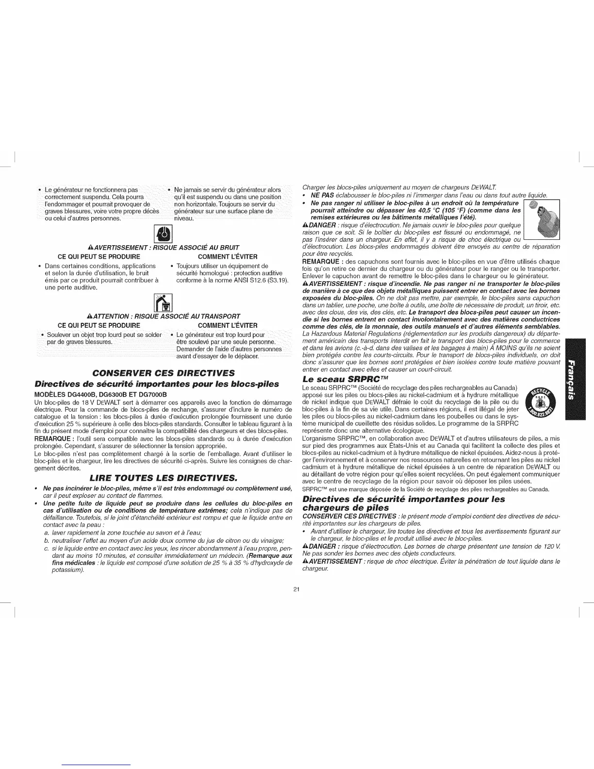 bloc-piles et le chargeur, lire les directives de s6curit6 ci-apr_s. Suivre les consignes de char-