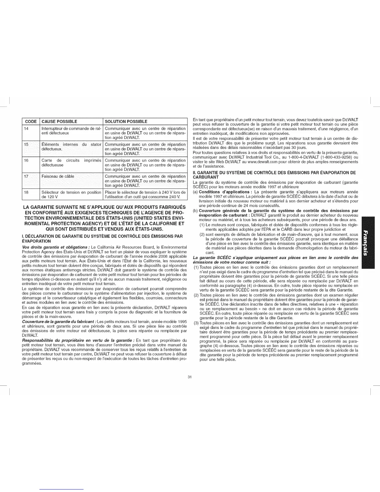 aux normes 6tatiques antismogs strictes. DEWALT dolt garantir le syst_me de contr61e des