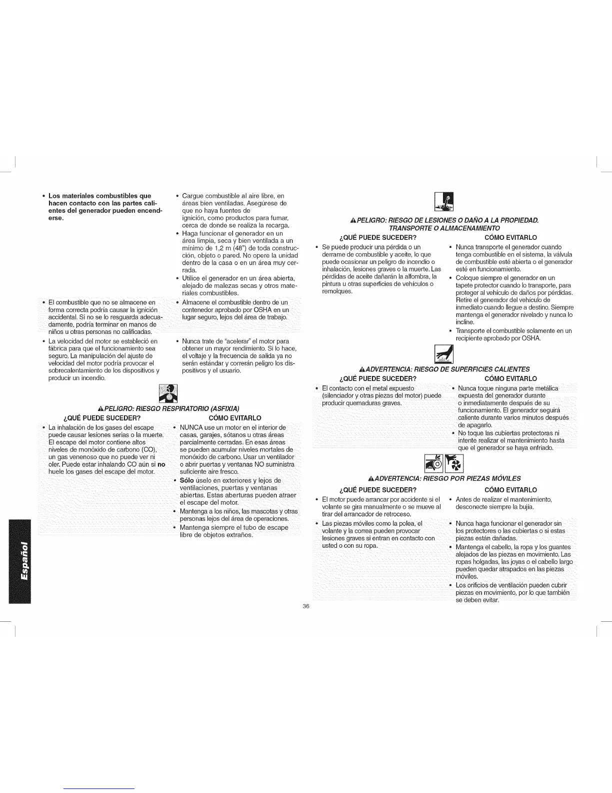 - • Nunca haga funcionar el generador sin