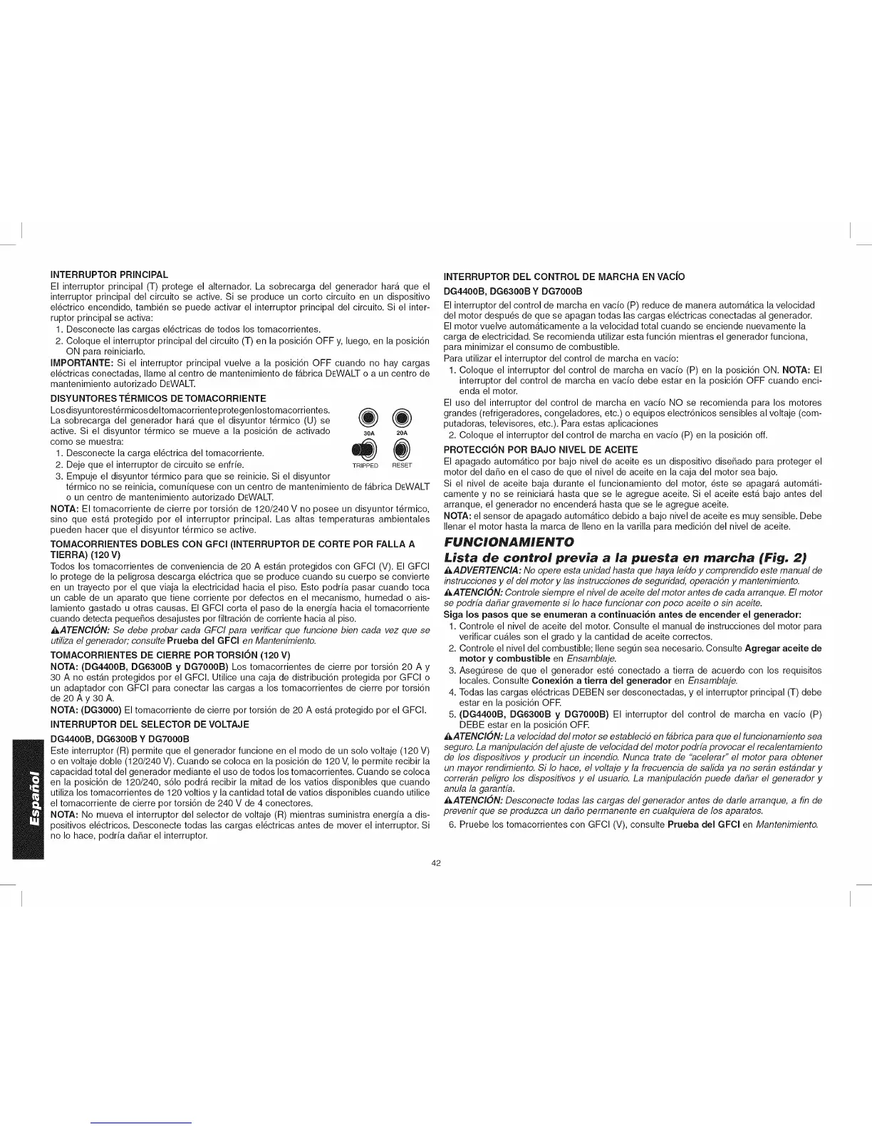 correran peligro los dispositivos y el usuario. La manipulacidn puede dahar el generador y