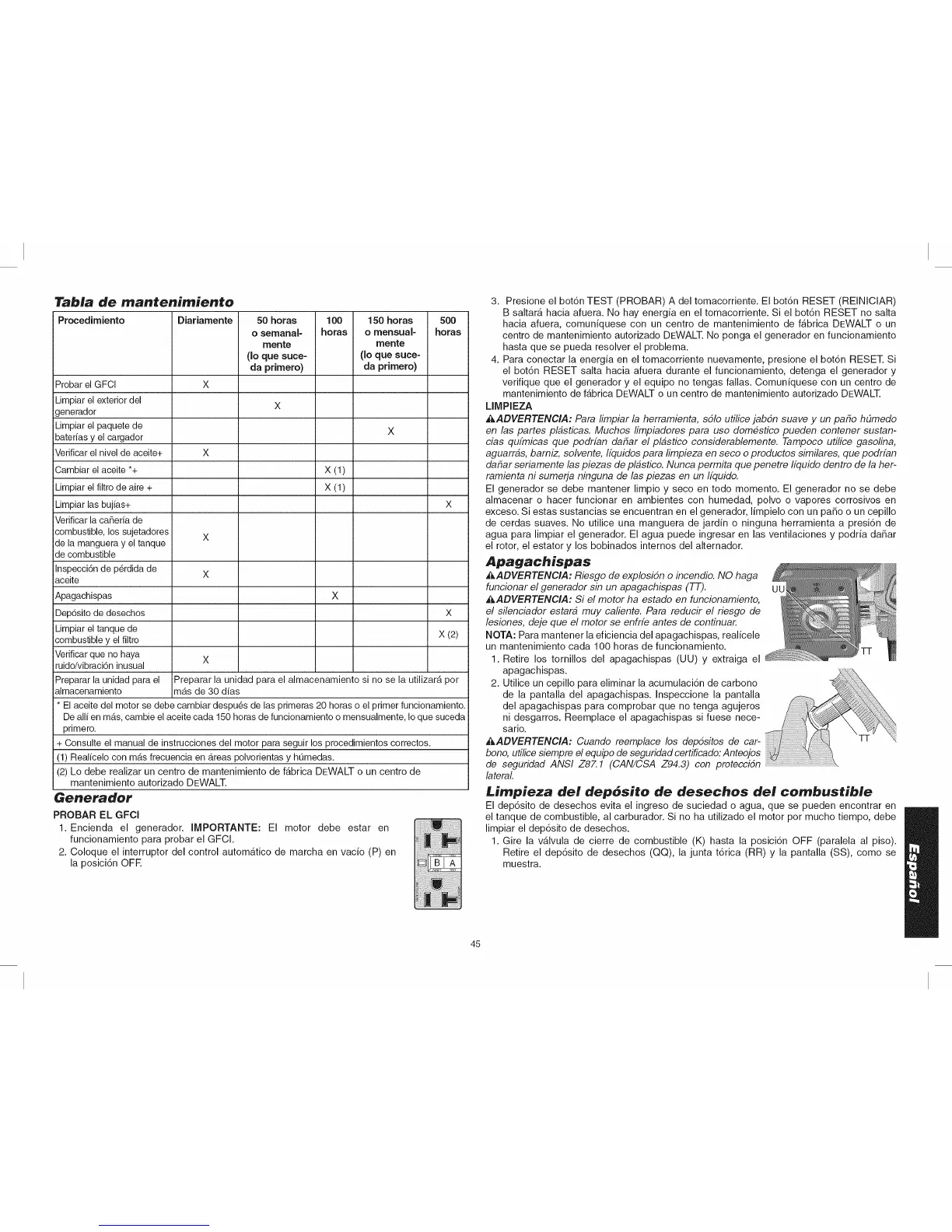 centro de mantenimiento autorizado DEWALT. No ponga el generador en funcionamiento