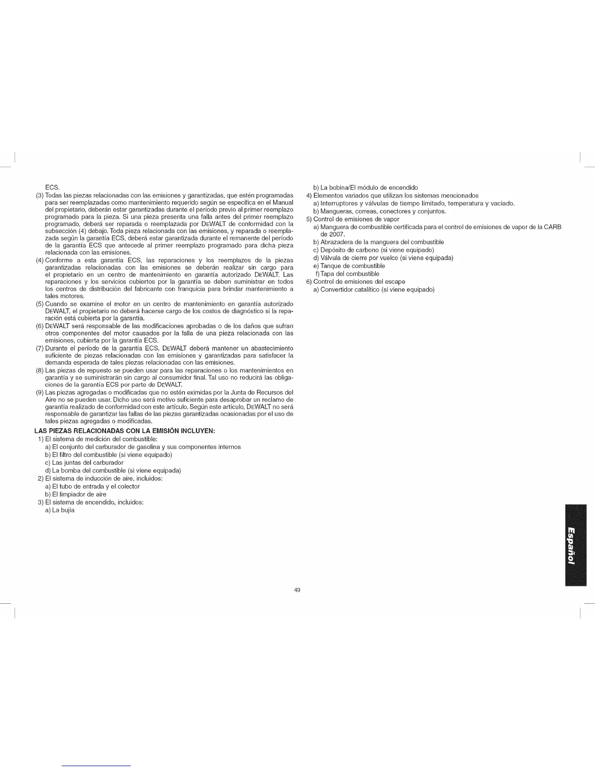 (7) Durante el periodo de la garantia ECS, DEWALT debera mantener un abastecimiento
