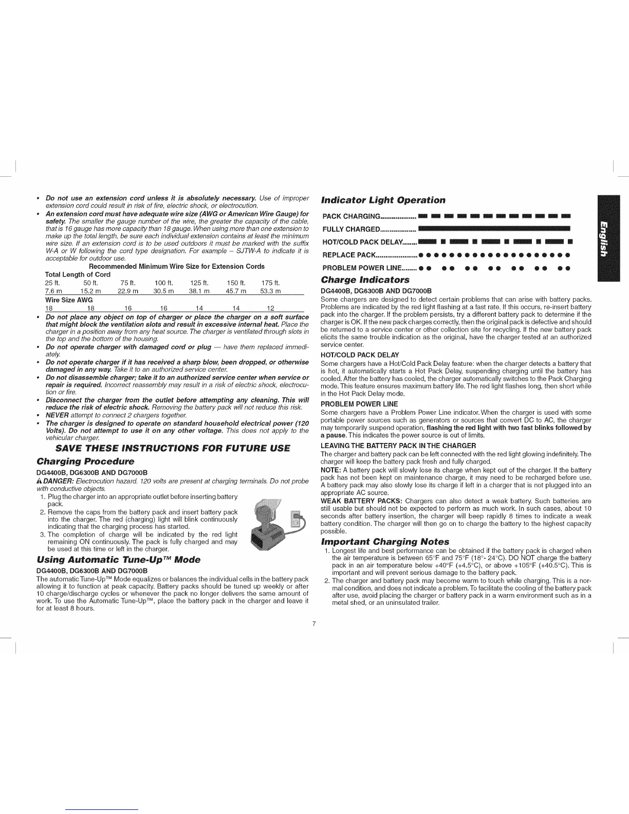 • Do not operate charger if it has received a sharp blow, been dropped, or otherwise