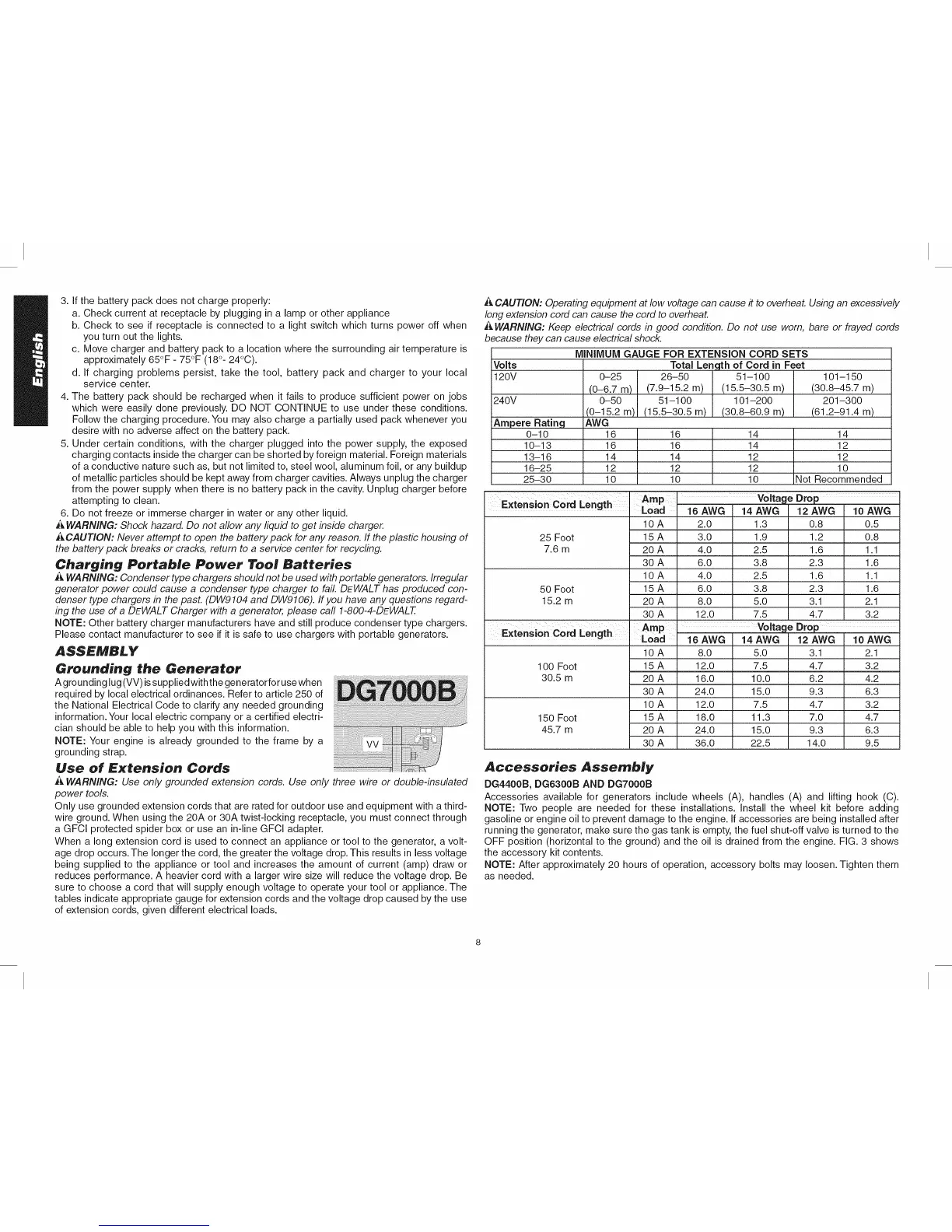 ing the use of a DEWALT Charger with a generator, please call 1-800-4-DEWALT.