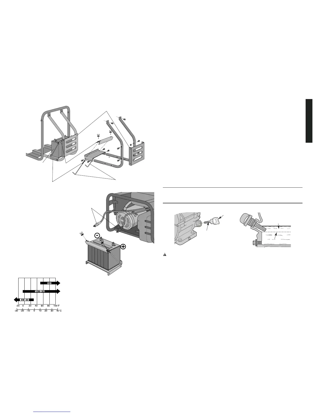 oil before starting the engine. Check the oil level before each use with the generator on a level
