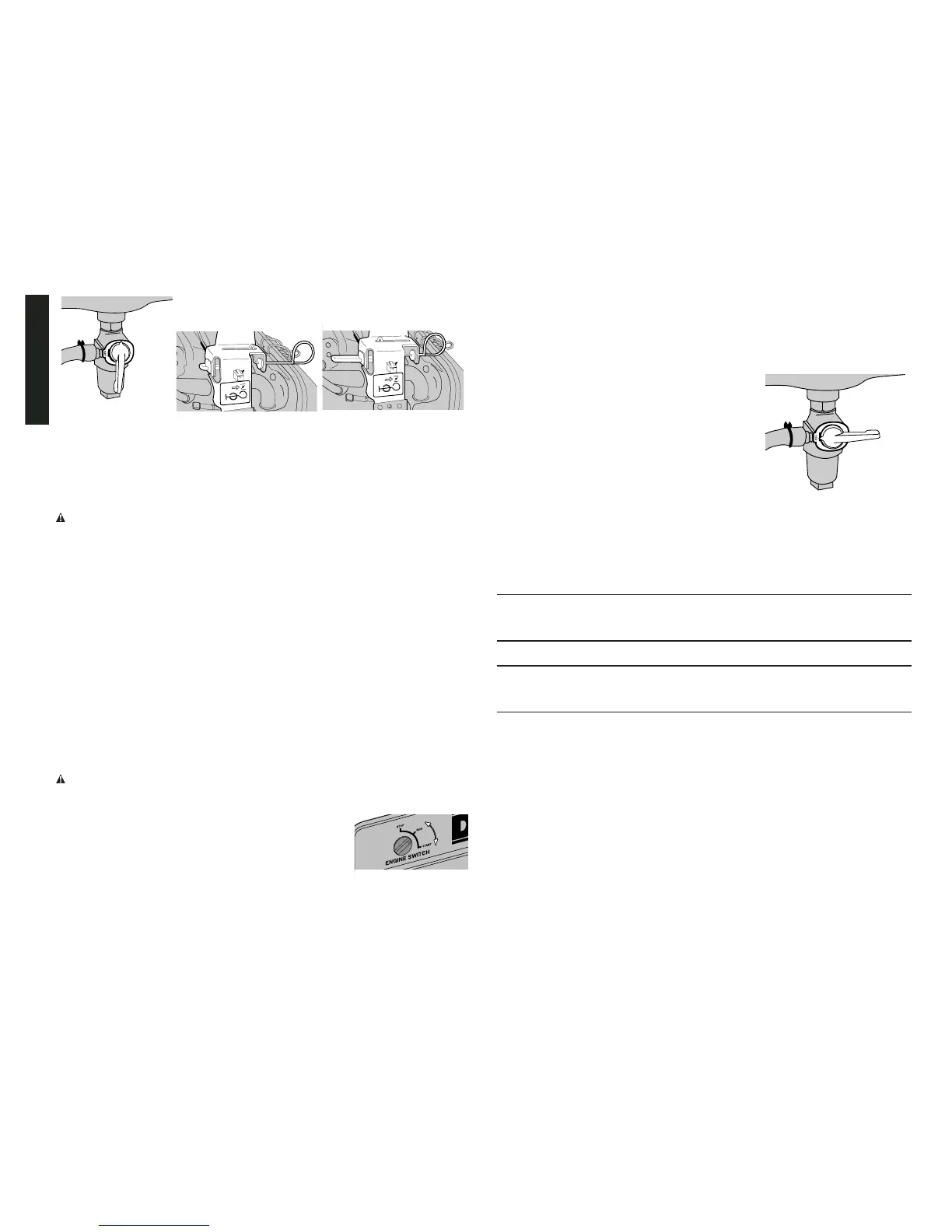 3. Open the fuel valve by turning the petcock clockwise to the vertical position as shown in