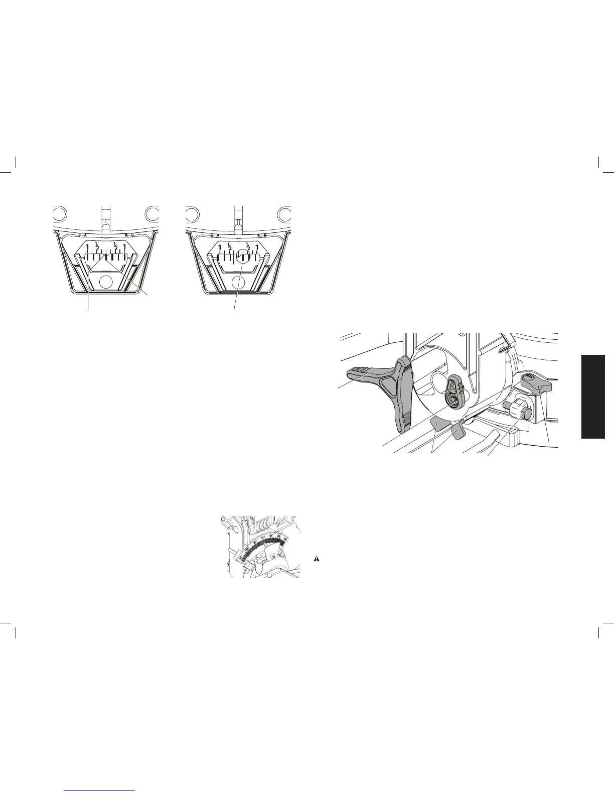 droite. Pour desserrer la poignée et régler le biseau, tourner la