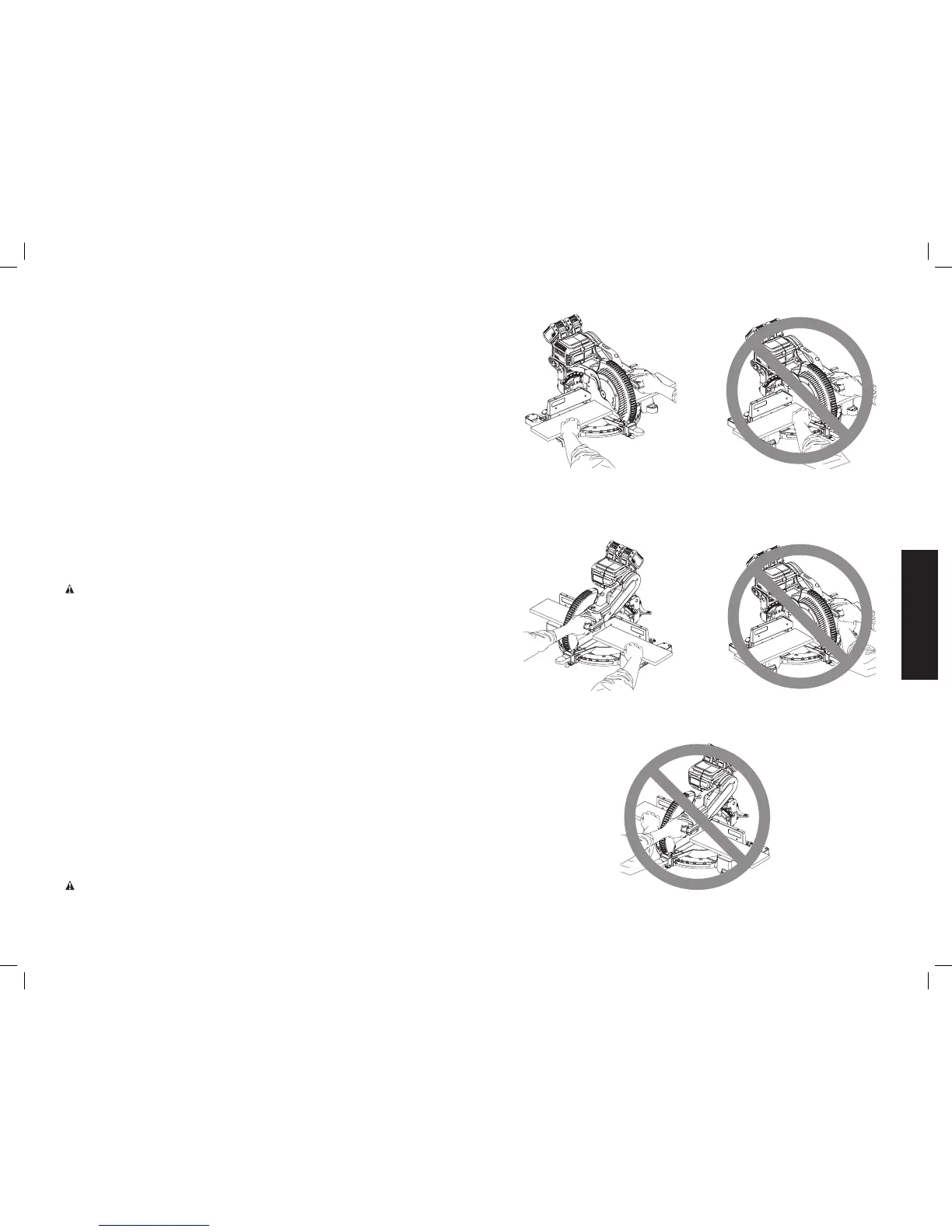 scie à onglet. Ne placez jamais les mains à l’intérieur de la zone de coupe, entre les deux