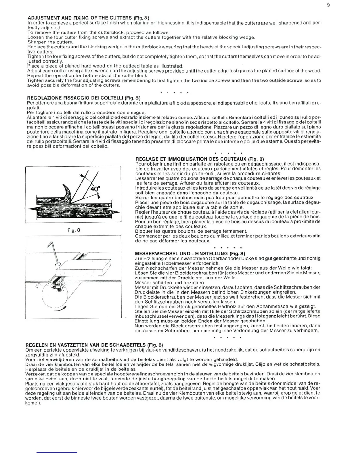 DeWalt DW 1150 - ADJUSTMENT AND FIXING OF THE CUTTERS; Cutter Sharpening and Adjustment Procedure
