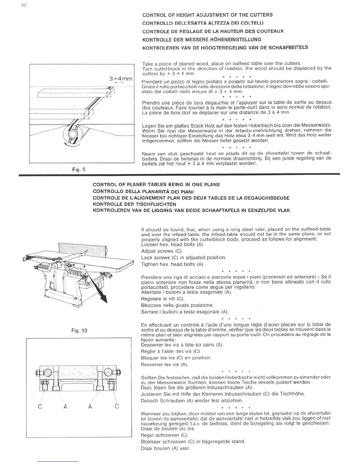 DeWalt DW 1150 - CUTTER HEIGHT AND TABLE CONTROL; Cutter Height Adjustment Verification; Planer Table Alignment Procedure