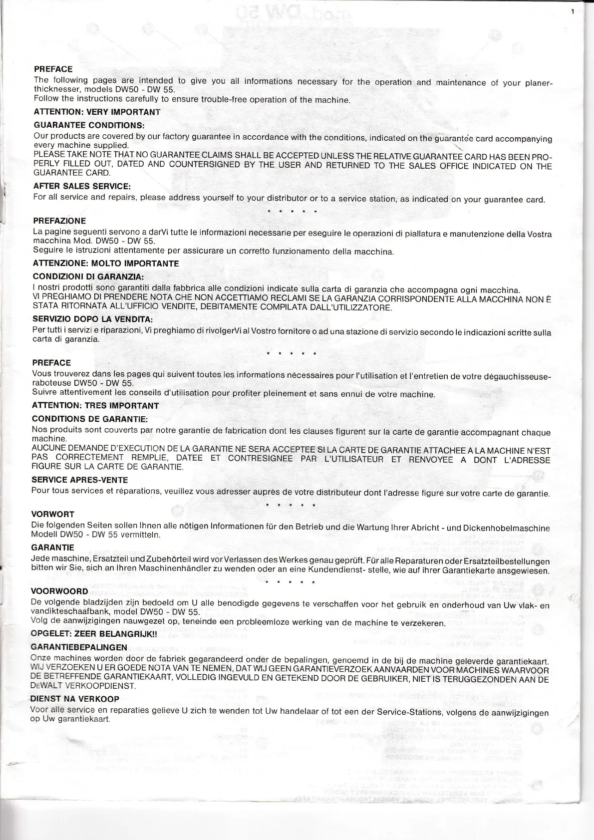 DeWalt DW 50 - Important Information and Operations; Guarantee Conditions; After Sales Service