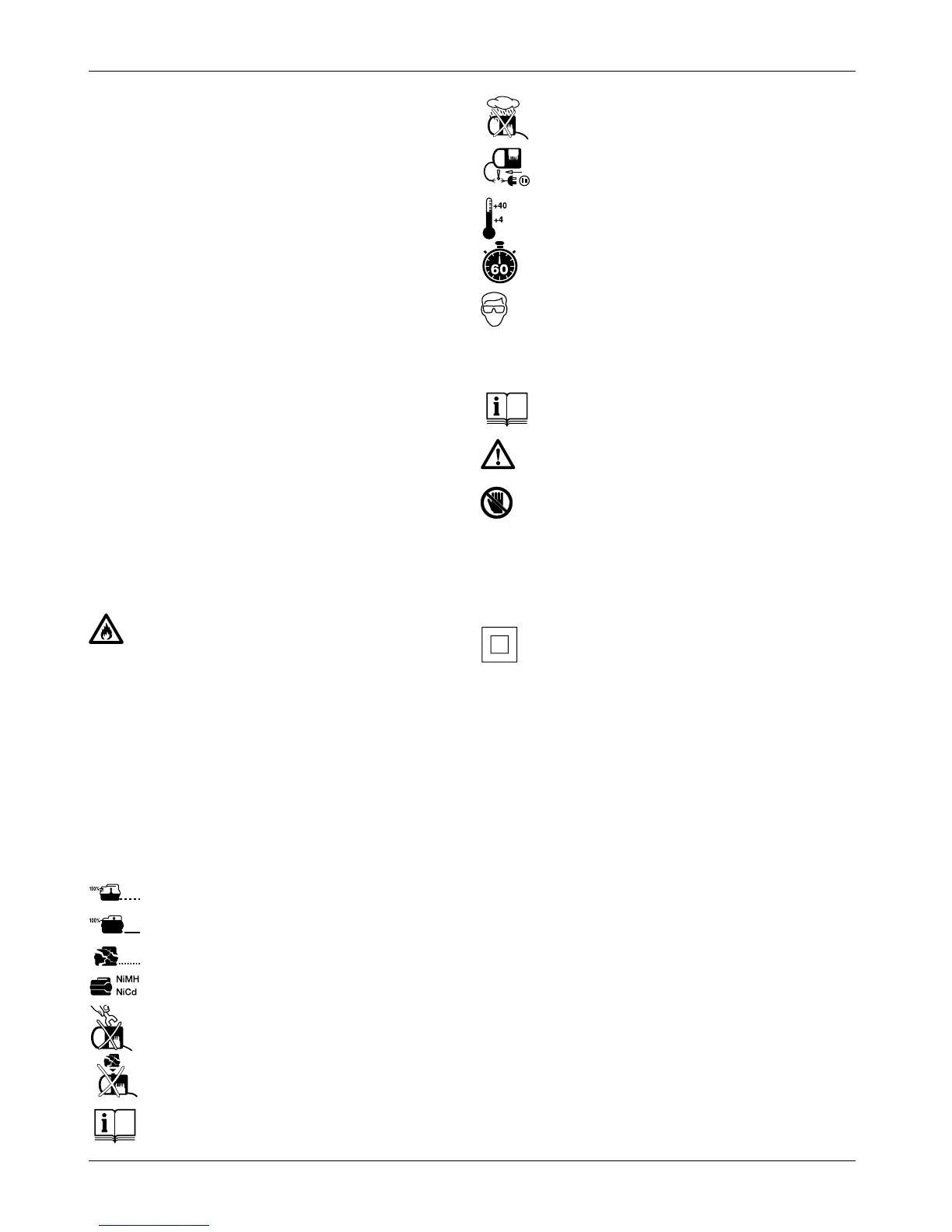 De labels op de oplader en op de accu laten de volgende pictogrammen