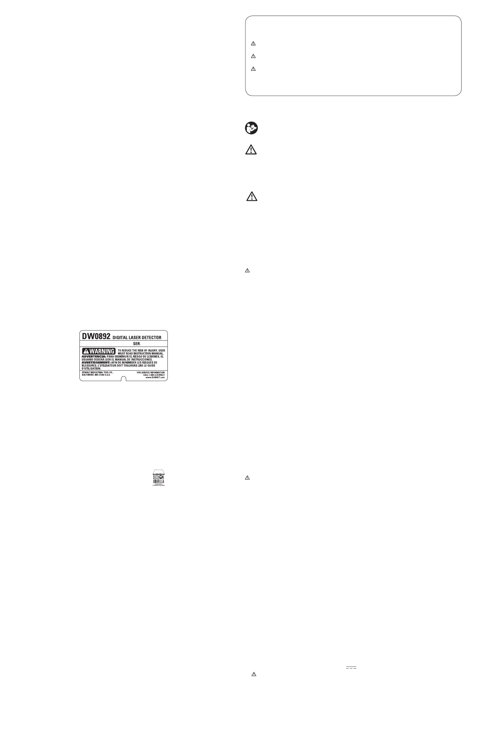 advertencia se vuelven ilegibles o faltan, llame al 1-800-4-DeWALT (1-800-433-9258) para que