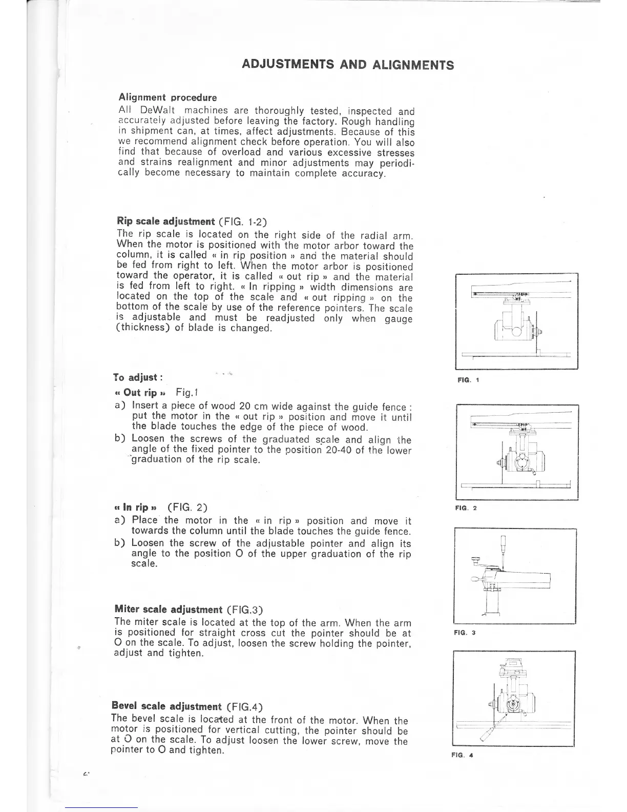 DeWalt DW110 - Adjustments and Alignments; Rip, Miter, and Bevel Scale Adjustments