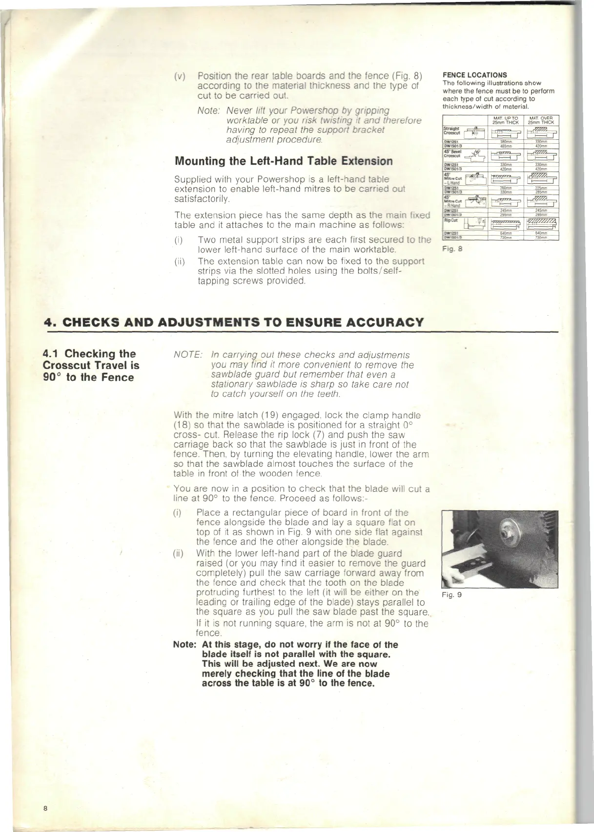 DeWalt DW1501 - 4 Checks & Adjustments to Ensure Accuracy; Checking the Crosscut Travel Is