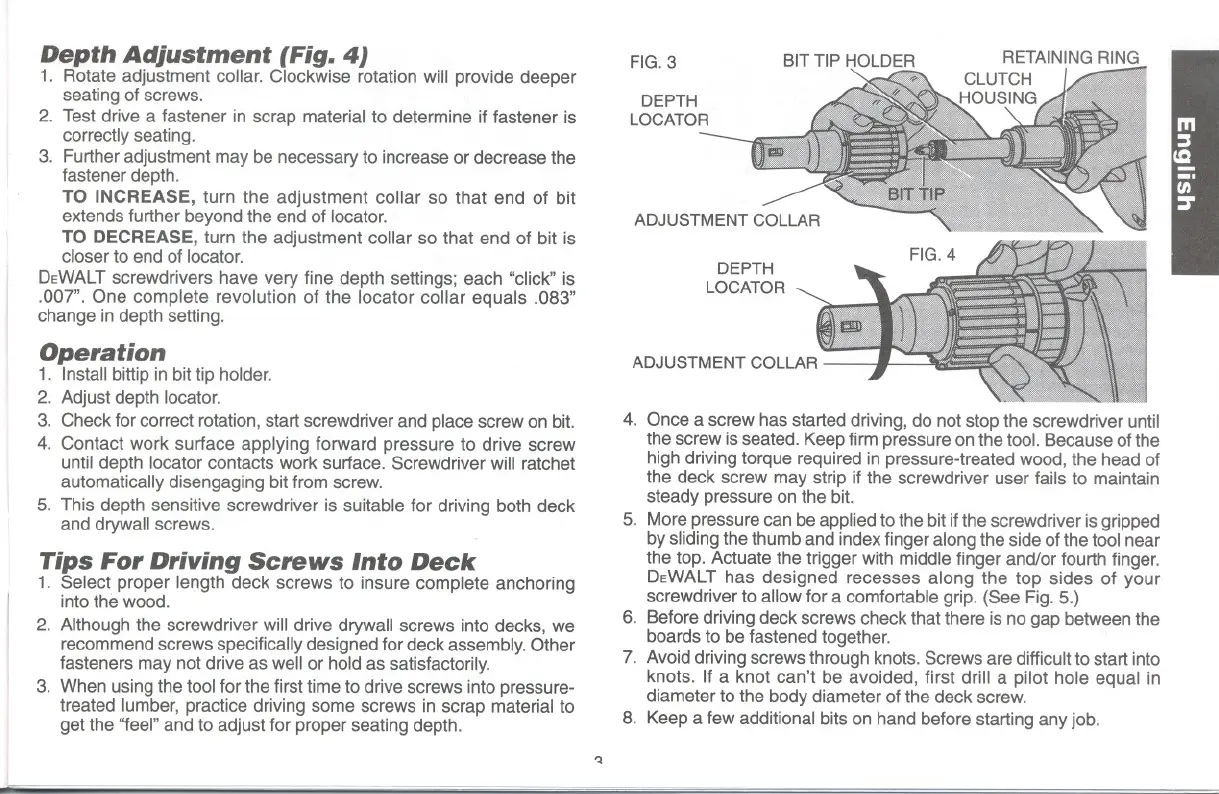 DEWALT screwdrivers have very fine depth settings; each "click" is